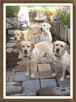 Bobby, Remy, Molly and Freya in the backyard of Surf Dogs before their daily romp to the park.